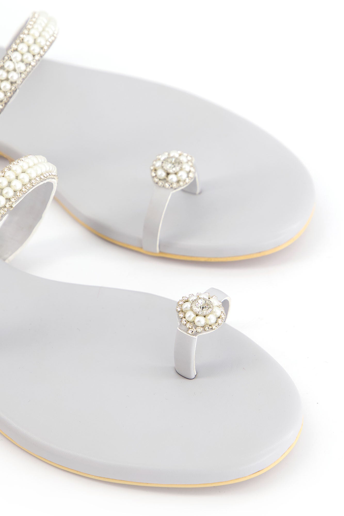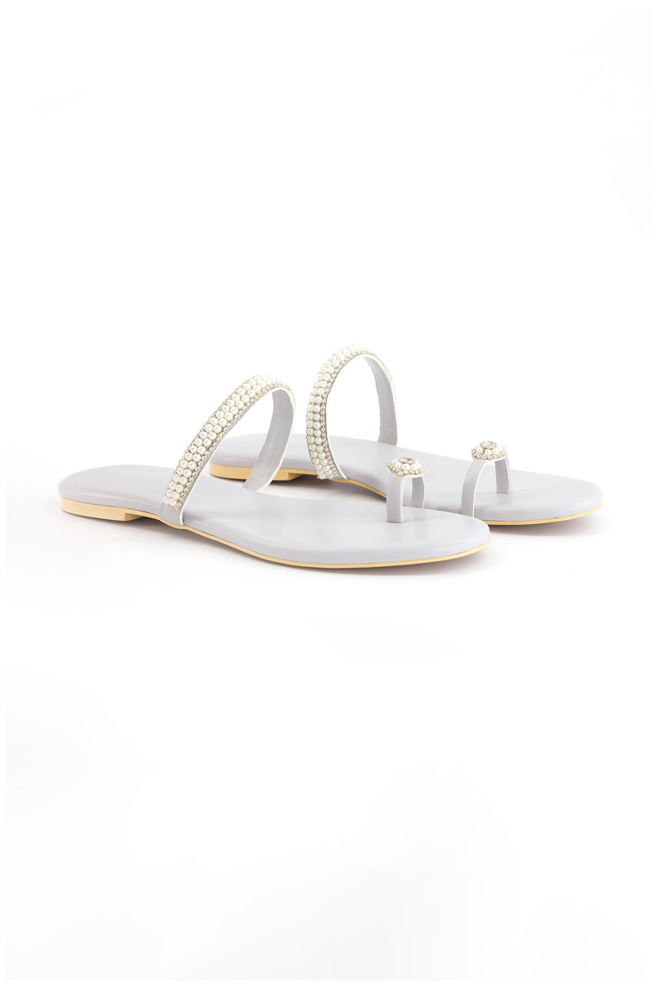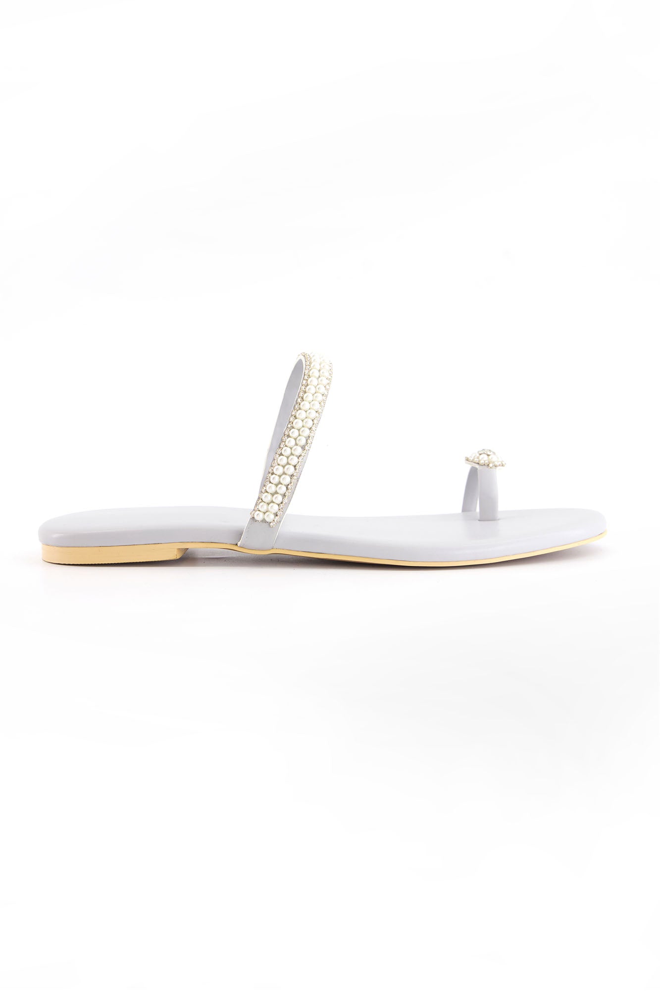 Featuring a sleek toe loop and delicate blingy string embellishment, these flats offer a refined and eye catching design. Crafted with a PU synthetic upper, the pair combines durability with a smooth finish. The padded insock provides added comfort, while the custom sheet outsole ensures stability for everyday wear.