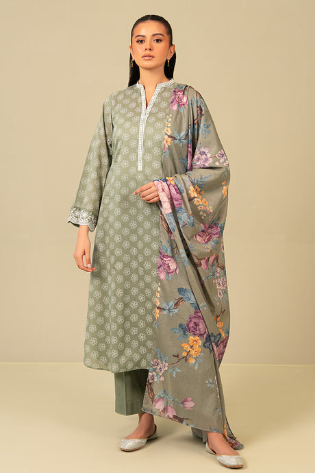 BLOOMING JADE-3PC EMBROIDERED LAWN SUIT