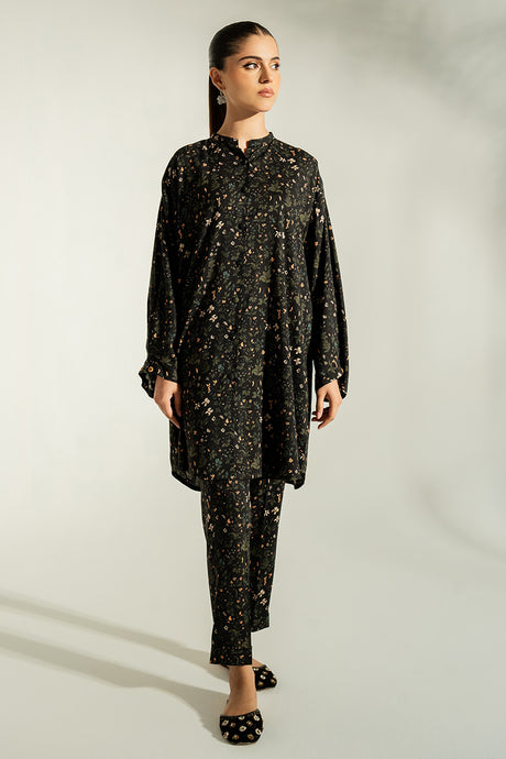 CHARCOAL DUST-2PC LINEN PRINTED SUIT