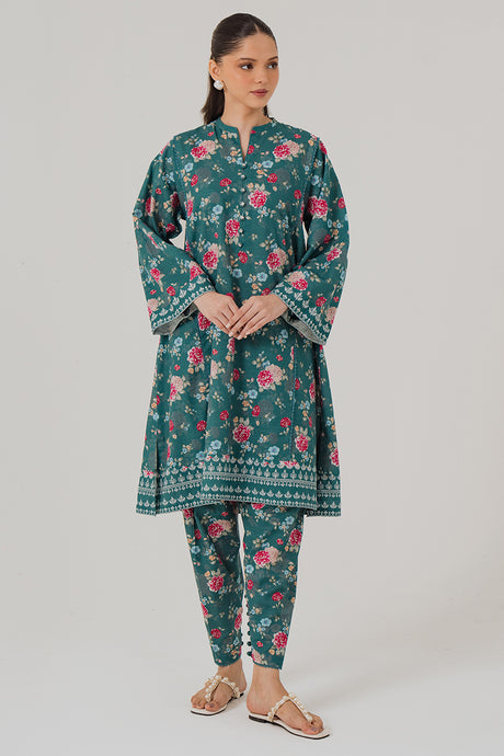 EMERALD SPRUCE-2 PIECE KHADDAR PRINTED SUIT