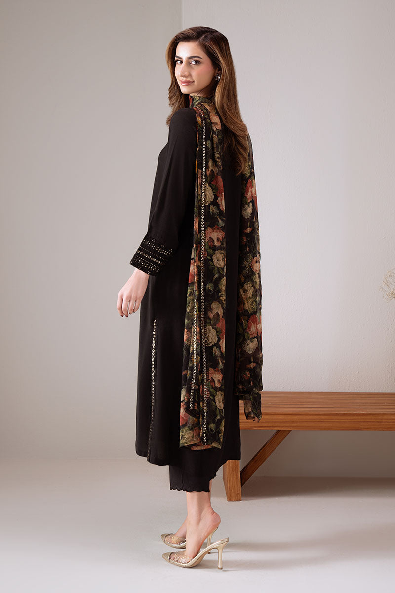 STYLE TIP Elevate your wardrobe with this sophisticated two-piece ensemble featuring a premium silk shirt paired with an elegant chiffon dupatta. The shirt showcases a classic straight-front open design with front and back plain dyed fabric for timeless appeal. A refined half-band neckline with V-cut detailing and functional front buttons adds contemporary flair, while straight sleeves are adorned with intricate embroidered borders. The accompanying chiffon dupatta features printed embroidery, completing this versatile look perfect for both casual gatherings and formal occasions. Crafted with attention to detail, this set combines traditional craftsmanship with modern silhouettes.