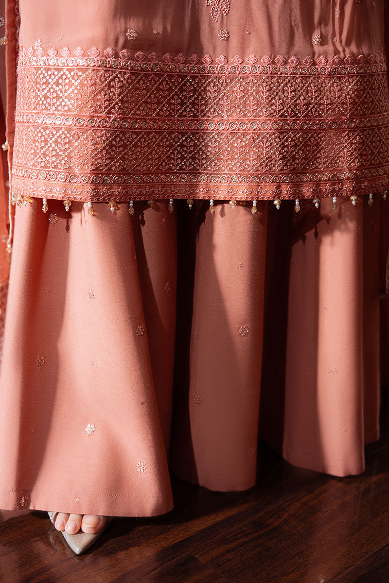 - This Sunset Dew 4PC Chiffon Embroidered Suit combines elegance and intricate craftsmanship. The suit features a chiffon shirt embroidered on the front, back, and sleeves, enhanced with extensive embroidered pattis on the hem, sleeves, back, and placket, adding refined detail. Complementing the shirt, the silk trousers are beautifully embroidered for a rich texture. A silk-dyed slip ensures comfort and a smooth fit beneath, while the chiffon embroidered dupatta completes the ensemble with graceful sophistication. Ideal for occasions where style and quality are paramount.