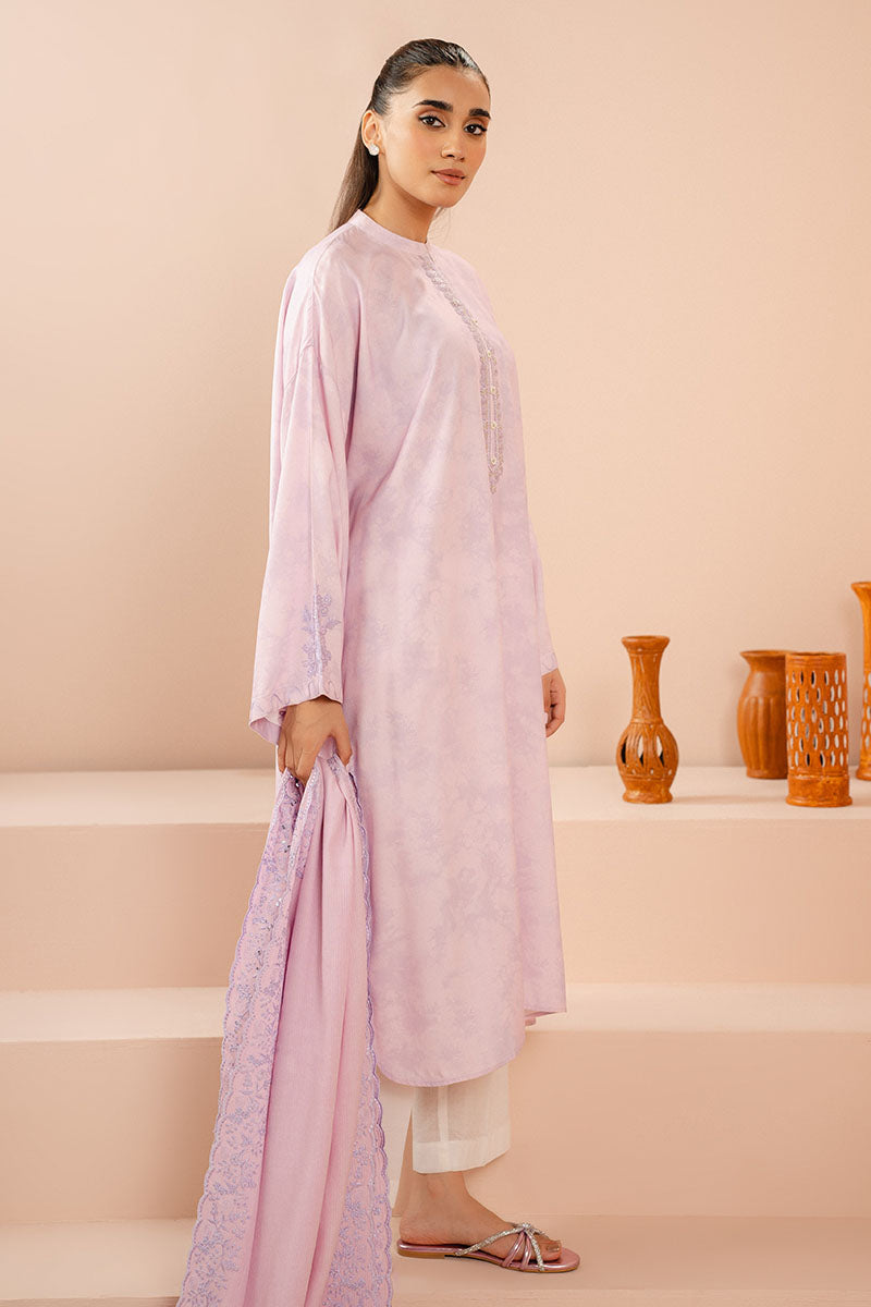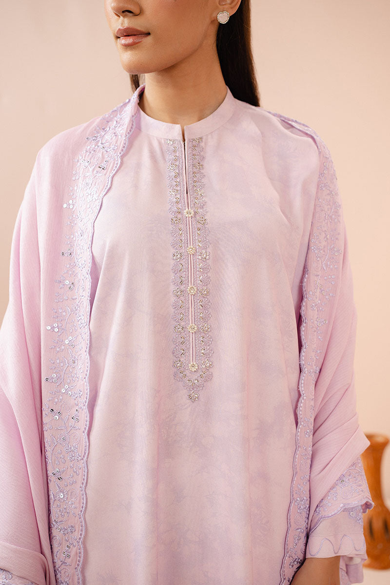 Experience ultimate comfort and style with the BLUSH CASCADE-2 PC set. The drop shoulder boxy fit and printed design give the linen SHIRT a chic look. The embroidered neckline and box sleeves add a touch of elegance. The DUPATTA features intricate embroidery, completing the perfect outfit for any occasion.