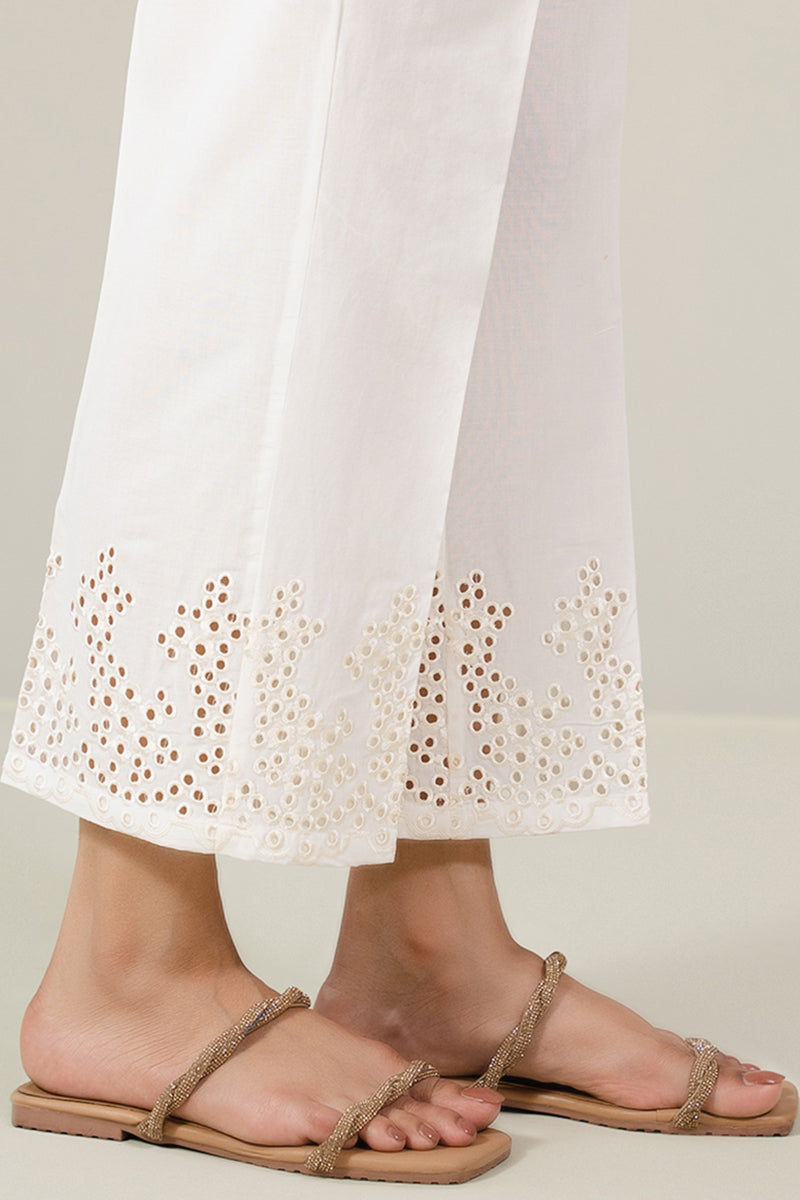 CAMBRIC SCHIFFLI EMBROIDERED STRAIGHT PANTS