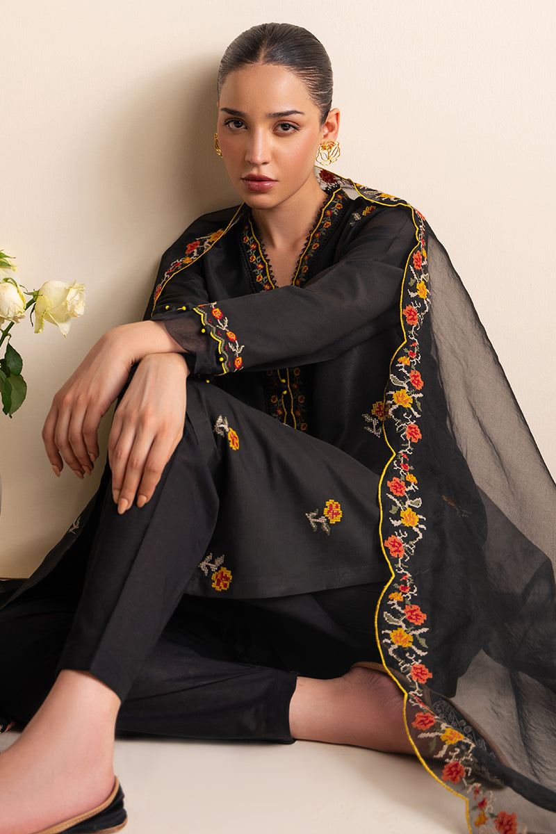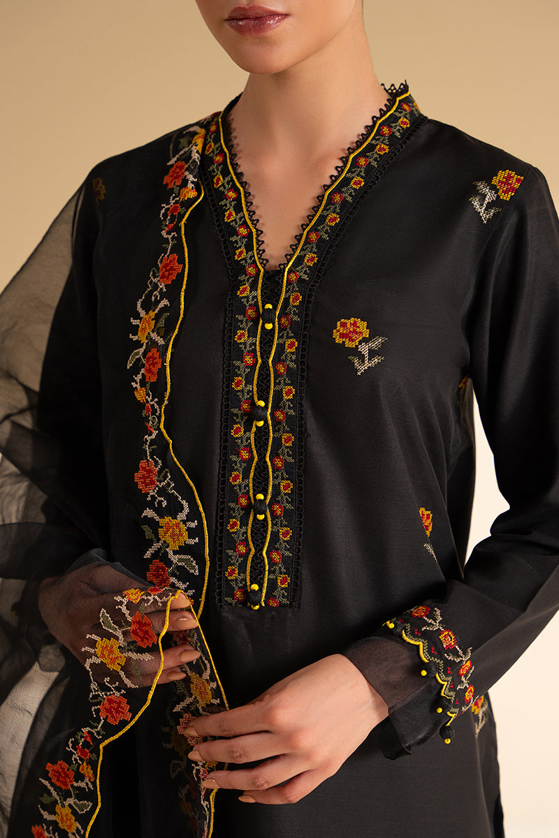 - Discover effortless elegance with our DUSKY-2 PIECE (SHIRT & DUPATTA). The straight shirt, made from high-quality cambric, features a delicate embroidered front and a dyed back. The wraparound neck is adorned with a beautiful lace and tassling detail, while the straight sleeves also showcase delicate embroidery and organza on the hem. The organza dupatta, dyed and embroidered with lace, adds a touch of sophistication to this timeless ensemble.