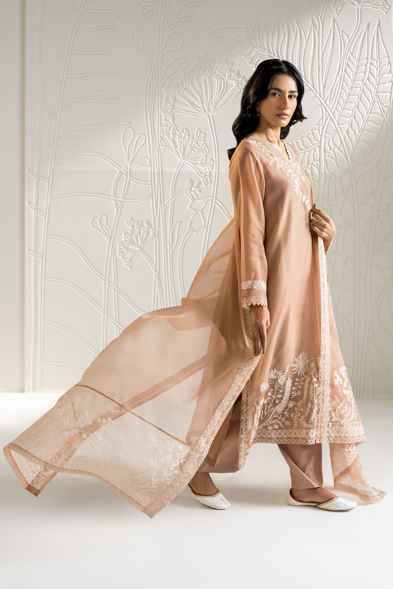 SHIRT Straight shirt (Cotton net) Front embroidered Back plain dyed Embroidered V-neckline Straight sleeves with embroidered borders DUPATTA Organza embroidered dupatta
