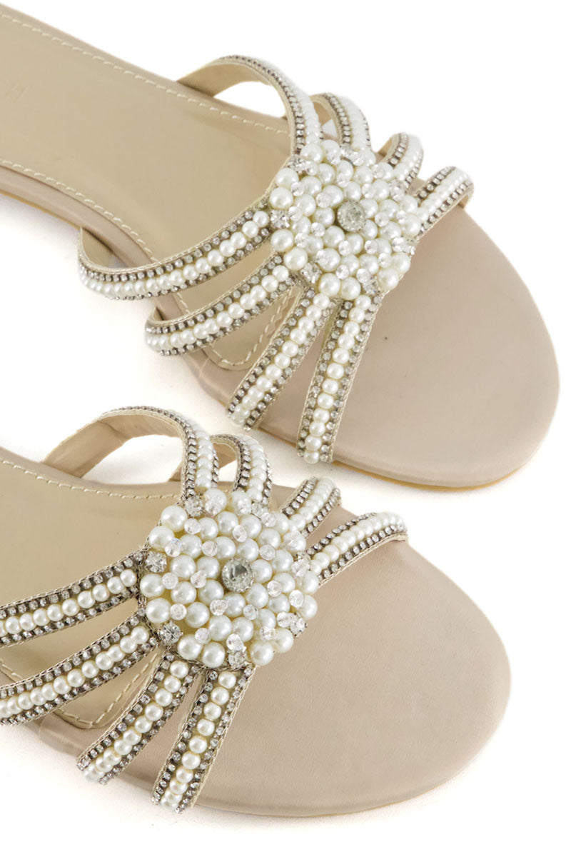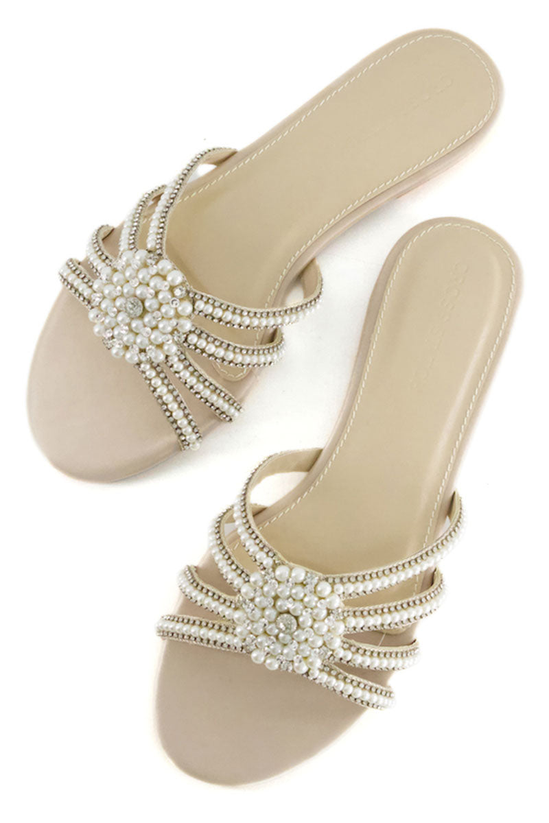 Introducing PALOMA flats, designed with delicate pearl embellishment for a touch of elegance. Crafted with padded insoles and a smooth satin material for ultimate comfort. The sheet outsole adds durability for long-lasting wear. Elevate any outfit with these timeless flats.