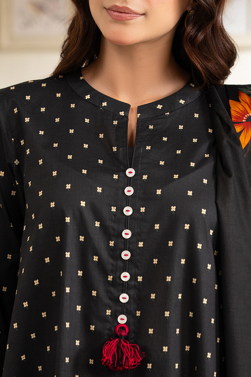 - Elevate your style with the Posy Dusk 3pc set. This straight shirt features a unique round hem, front and back prints, and a flat band neckline with button and tassel accents. Complete the look with the matching lawn-printed dupatta and box pants. Stand out in this fashionable and comfortable set.