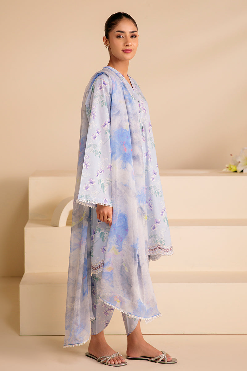 - Elevate your style with our PURPLE HAZE 3-Piece Printed Lawn Suit. The lawn printed shirt features an 80" embroidered patti, adding a touch of elegance. The cambric printed trouser and chiffon printed dupatta complete the look, making it perfect for any occasion. Dress to impress with this stunning suit.