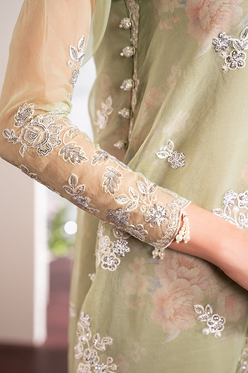 - This TENDER BREEZE-4 PC EMBROIDERED ORGANZA SUIT includes a delicately embroidered shirt, featuring a beautiful motif and 100" patti. The silk dyed trouser adds a touch of elegance, while the silk printed slip provides comfortable coverage. The organza embroidered dupatta is adorned with two intricate pallus and a striking 210" patti. Elevate your style with this expertly crafted suit.