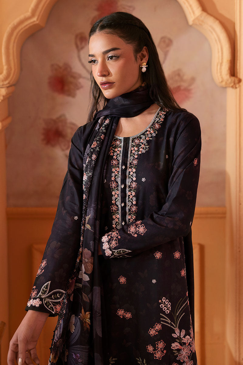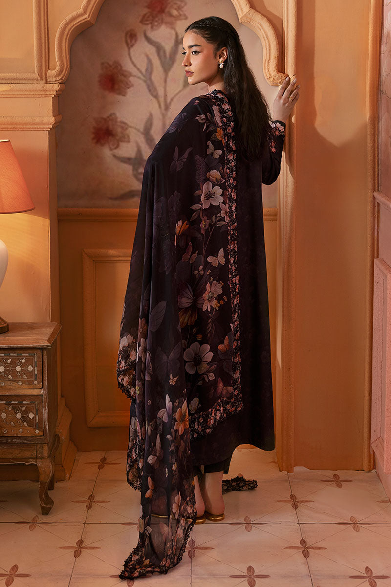 - Elevate your style with our CAVIAR CHARM 3PC set. The shirt features a lawn print and intricate embroidery on the front and sleeves, with a printed back and embroidered patti for a polished look. The cambric dyed trouser and silk printed dupatta complete the set for a perfect, sophisticated ensemble.