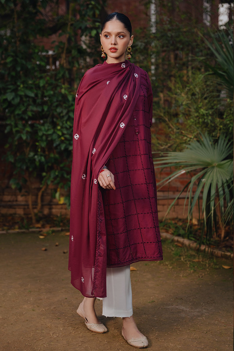 - Crafted with expert craftsmanship, the RED WOOD-2 PIECE includes a beautifully designed a-line panelled shirt, complete with front embroidery and a back that is plain dyed. The neckline features a band with placket and button details, while the sleeves are intricately embroidered. Paired with a delicate lawn embroidered dupatta, this set offers both style and elegance.
