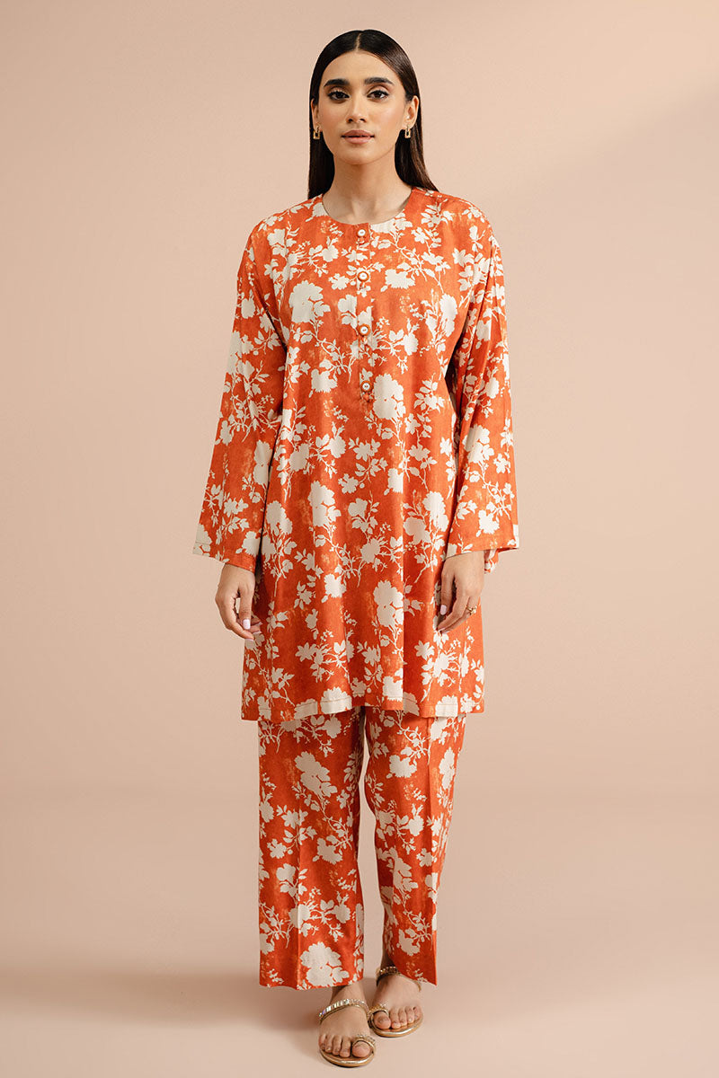 Expertly crafted and designed with a drop shoulder boxy cut, RUSSET CREAM offers a stylish and comfortable fit. Made with linen fabric, this shirt features a round neckline with a front placket and unique front and back prints. The accompanying trouser is made from printed linen and designed with boxy pants for a chic and on-trend look.