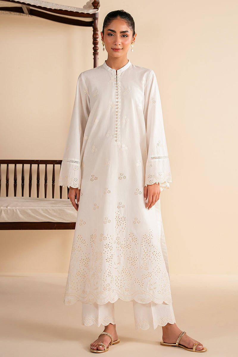 - The Serene Dew Chikankari Shirt features a straight style made of high-quality cambric fabric. It has a delicate embroidery on the front and flared sleeves for a touch of elegance. With a band neck and loop button, this shirt is both stylish and comfortable. Perfect for any occasion.