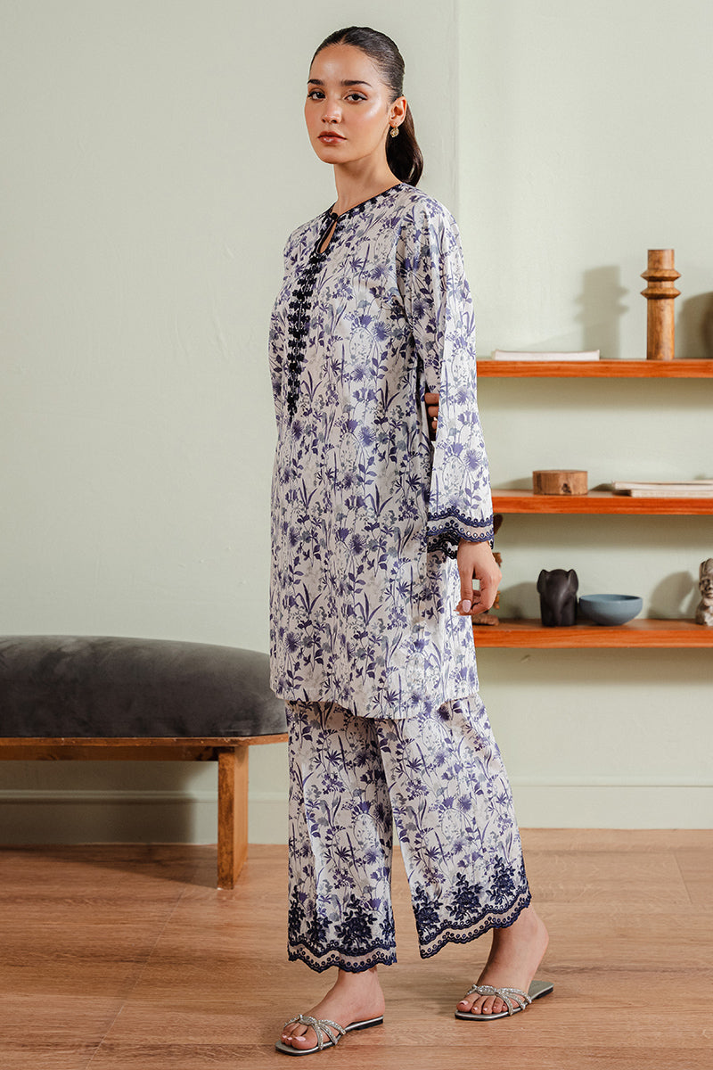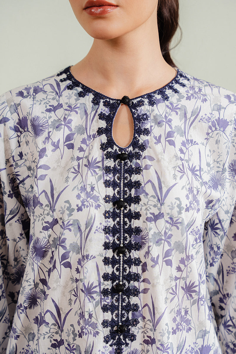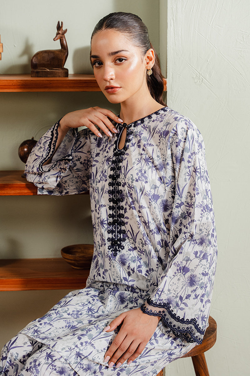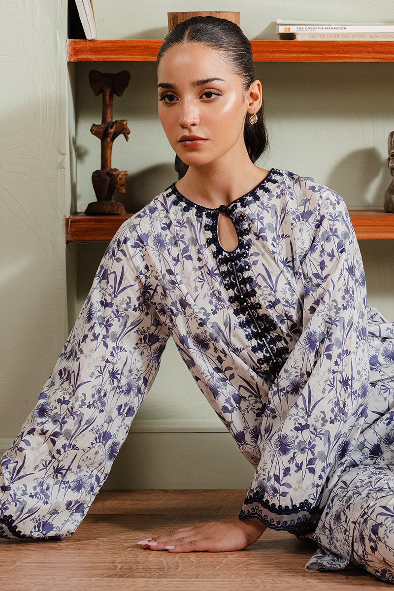 - Experience ultimate comfort and style with our SERENITY MIST-2PC set. The loose fit SHIRT features a beautiful front and back print, along with an embroidered neckline patch and tasseling details. The Kurta sleeves also have delicate embroidery patches. Accompanied by its matching TROUSER, made of culottes cambric, with both embroidered and printed details for a truly elegant look. Perfect for any occasion.