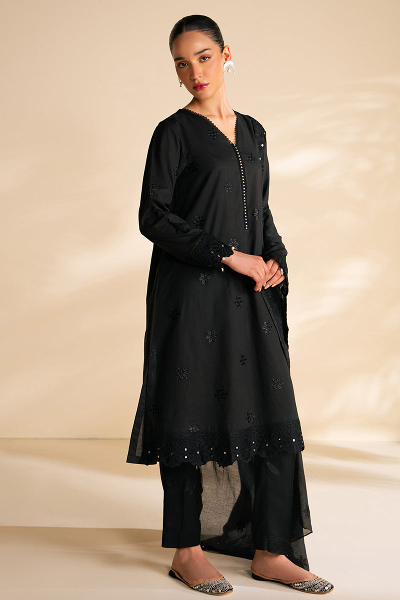 - Elevate your style with our SHADOW NOIR-2 PC (SHIRT & DUPATTA). The A-line cambric shirt features intricate front embroidery and a V-neck adorned with lace and pearl detail. Paired with a lawn embroidered dupatta, this set is perfect for any occasion. Make a statement with our straight embroidered sleeves.