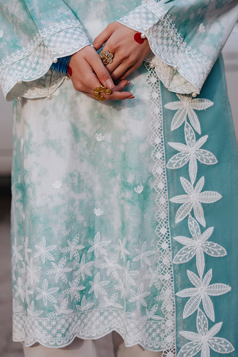 - Take your style to new heights with SKY WAY-2 PIECE, a stunning a-line ensemble made of comfortable cambric fabric. The front and back of this shirt are adorned with beautiful prints, while the small round neck features delicate lace and pearl detailing. Flared sleeves with embroidered borders and rajjo net dupatta add a touch of elegance to this must-have outfit.