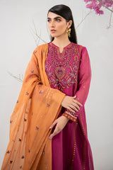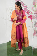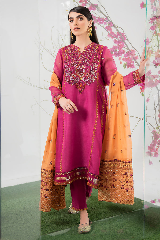 - RUSTIC FUSCHIA IS A STUNNING THREE-PIECE OUTFIT FEATURING AN A-LINE SEQUIN EMBROIDERED SHIRT PAIRED WITH RAW SILK TAPERED PANTS WITH AN EMBELLISHED HEM. IDEAL FOR YOUR FESTIVE OUTINGS, THE ENSEMBLE COMES WITH A CONTRASTING EMBROIDERED DUPATTA THAT STYLES BEST WITH CLASSIC KHUSSAS AND CHUNKY EARRINGS.