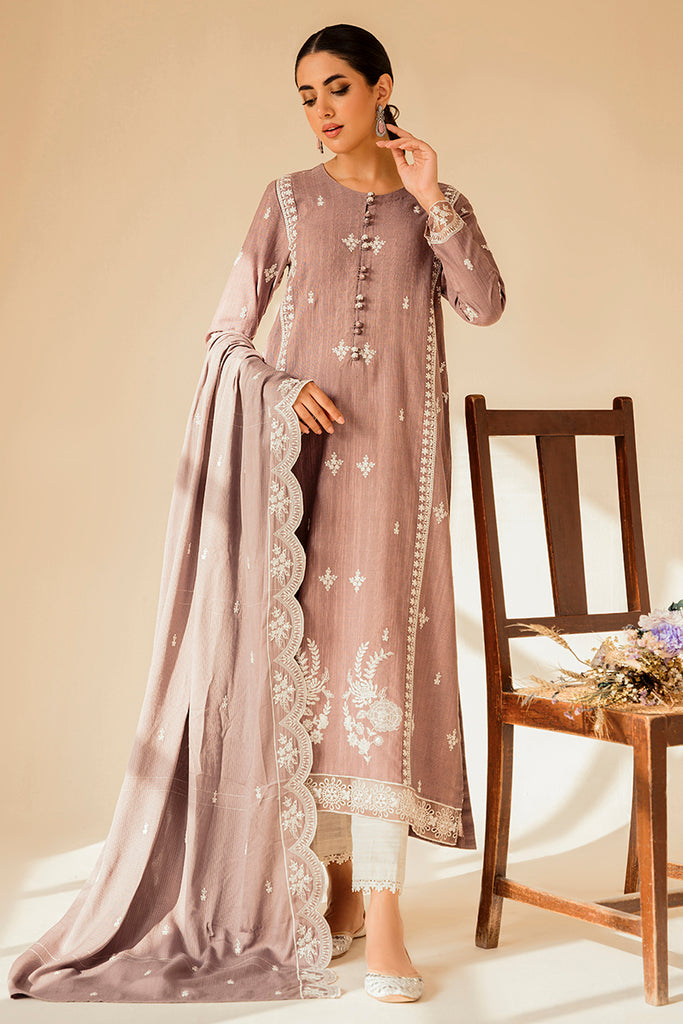 - Our SATIN MIST A-line shirt is perfect for the modern woman. Expertly crafted from khaddar, it features an embellished front full embroidered design and fitted embroidered sleeves. The back panel is plain dyed and comes with a staple woolen embroidered dupatta. Elevate your wardrobe with this timeless piece.