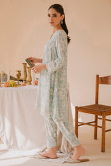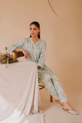 - This SOFT MINT design is perfect for everyday style. Crafted from linen fabric, this piece features a front print, back print, and neckline embroidered with lace. The sleeves are printed with linen with lace at the hem, and the tapered shalwar ensures a comfortable fit. For a modern look with a timeless elegance, SOFT MINT is the perfect choice.