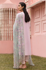 Expertly crafted with lawn fabric, this 3-piece suit features a delicate chikankari embroidered front and sleeve, complimented by a dyed back. The cambric dyed trouser, accompanied by a 60" schiffli patti, provides a comfortable and stylish fit. Complete the look with the chiffon printed and embroidered dupatta.