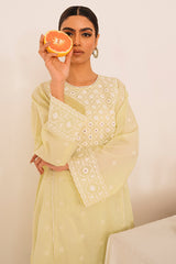 - Bringing you a pristine two-piece with faux mirror embellishment and charming floral details on the textured lawn kurta paired with a solid shalwar. the lime yellow outfit is ideal for daily wear.